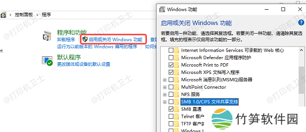 三、启用旧版共享协议(SMB 1.0)Windows更新后默认禁用了部分旧版共享协议,如SMB 1.0,而很多老旧打印服务器或共享设置仍依赖此协议。