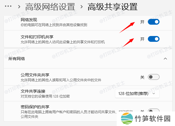 确保当前网络配置文件(如“专用网络”)下已启用以下选项: