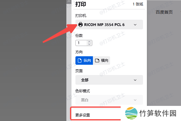 4、可点击“更多设置”进行边距、缩放等细节调整。