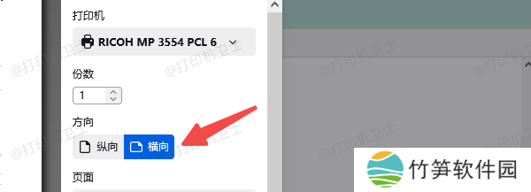 4、选择“横向”,确认其他设置无误后点击“打印”。
