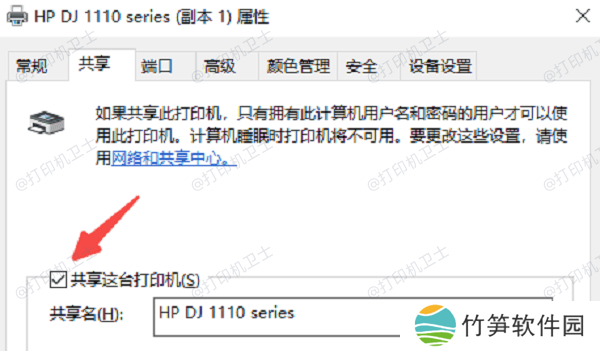 4、勾选“共享这台打印机”,并可设置共享名称。