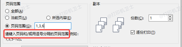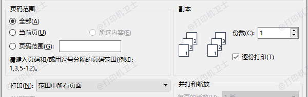 1、在打印界面点击“打印自定义页码”或“打印范围”。