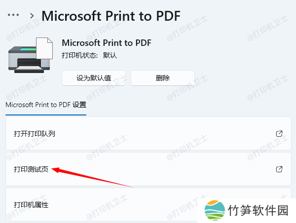 2、点击打印机图标,选择“打印测试页”,检查打印是否正常;