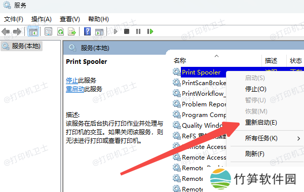 按下 Win+R 输入 services.msc,找到 Print Spooler 服务。