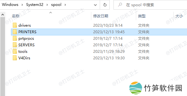 2、打开资源管理器,进入路径:C:WindowsSystem32spoolPRINTERS。