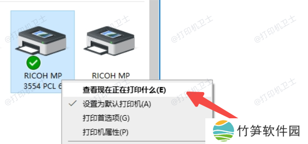 2、找到目标打印机,右键点击选择“查看现在正在打印什么”。