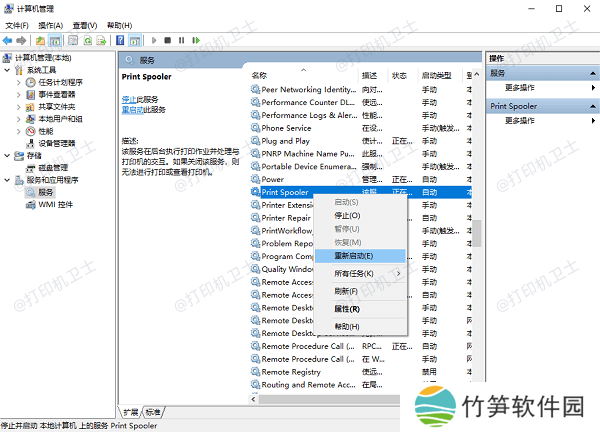 4、重新启动“Print Spooler”服务,再次尝试发送打印任务。