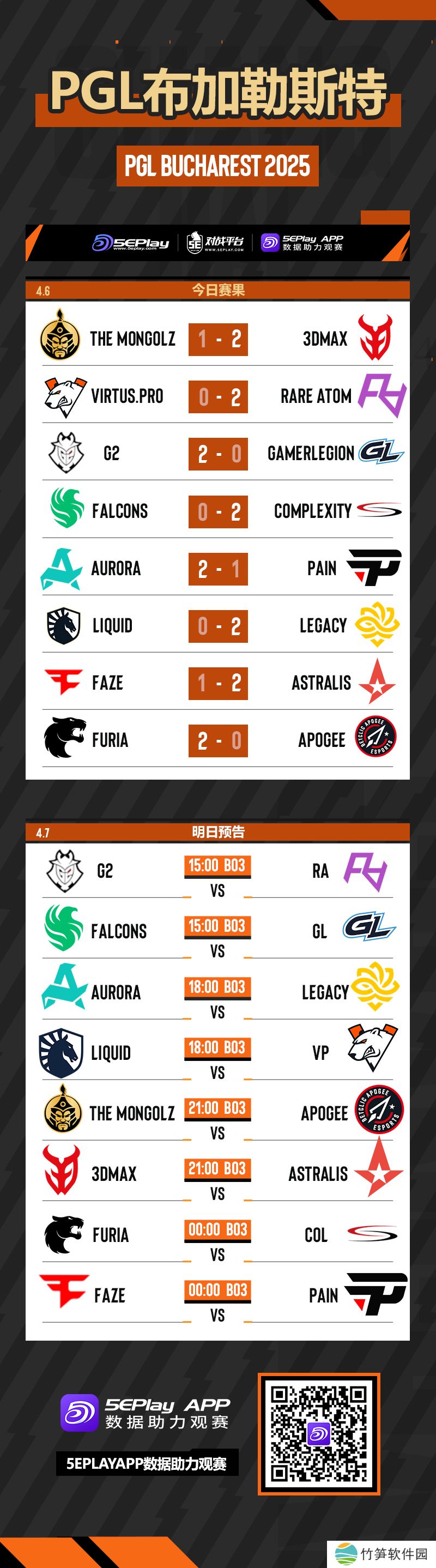 明日G2将对阵RA、Falcons迎战GL、晚些还有FaZe、Aurora等队的比赛,敬请期待。