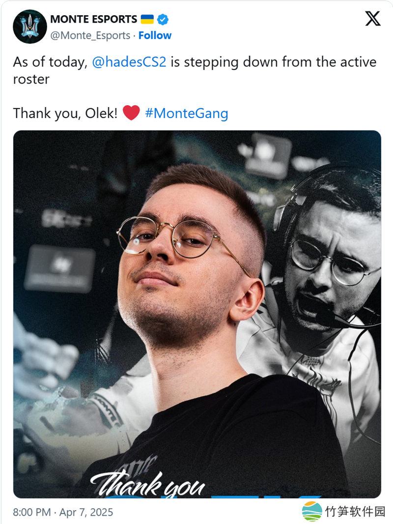 周一早些时候,Monte战队宣布hades已从其现役阵容中退出。在DemQQ转会至Passion UA战队后,Monte战队只剩下了三名队员。