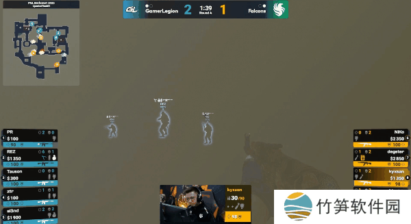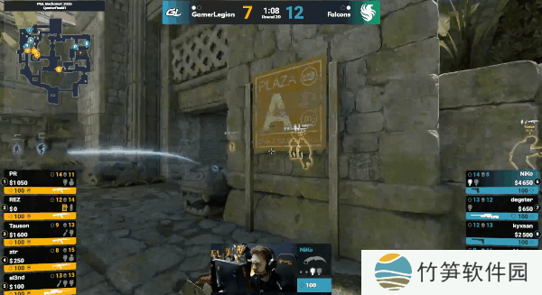 GL选图,GL先做进攻方,手枪局第二时间爆弹B区,进入包点直接被NiKo与kyxsan两人四杀接住,残局剩下PR一人无能为力。次回合GL直接纯e。
