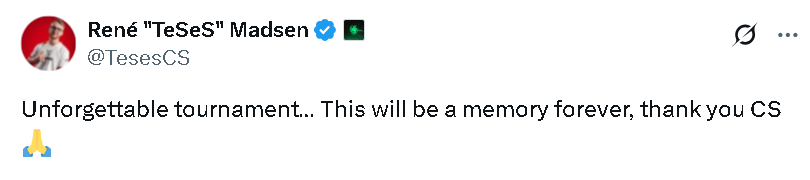TeSeS:难以忘怀的比赛……这将永远成为我的一段回忆,感谢CS。