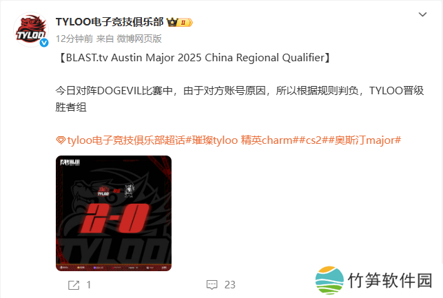 随后TYLOO俱乐部证实确实是因为DogEvil账号原因,根据规则判负,TYLOO晋级胜者组。