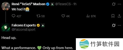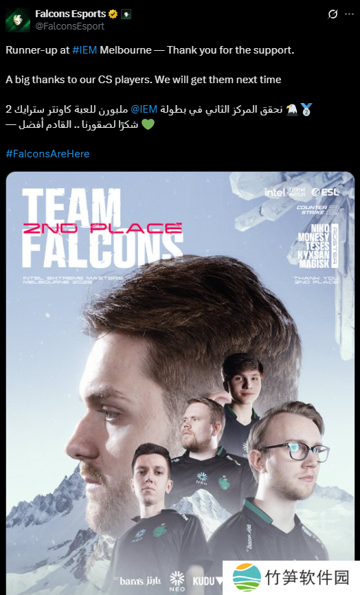 Falcons俱乐部官方账号:“感谢所有人的支持,我们在IEM 墨尔本的旅程结束了。感谢选手们的努力,最终获得IEM 墨尔本站亚军,下次我们会卷土重来。”