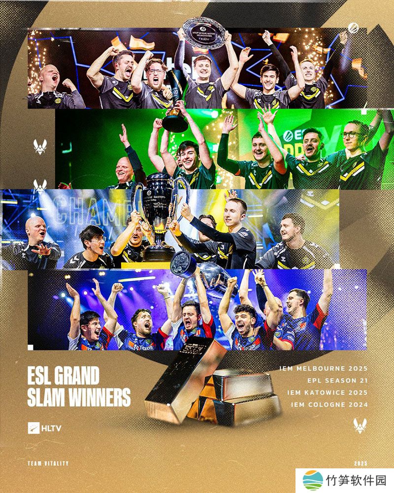 从2024年IEM 科隆站启程,到2025年连夺IEM 卡托维兹站、EPL S21,最终在IEM 墨尔本站登顶——Vitality以四座金杯铸就大满贯伟业,百万美元奖金与传奇头衔尽归小蜜蜂!