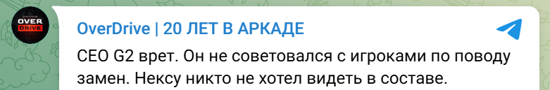 “G2战队的CEO在说谎。他并没有就人员替换问题咨询过队员们的意见。没人希望nexa出现在战队阵容里。”