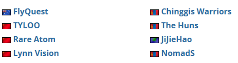 直邀主赛事的另外四支战队分别是(通过VRS获邀):