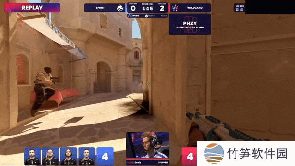 Wildcard先做进攻方。手枪局,土匪开局中路跳水下夹B,拿到人数优势马上转A,放下雷包二打二,phzy发力四杀拿下手枪局。