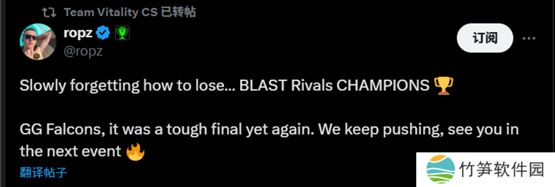 ropz:渐渐忘记失败的感觉了... BLAST巅峰赛S1冠军!