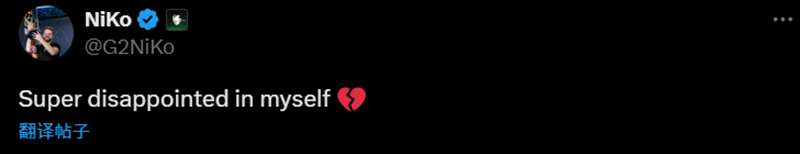 NiKo:对自己感到非常失望。