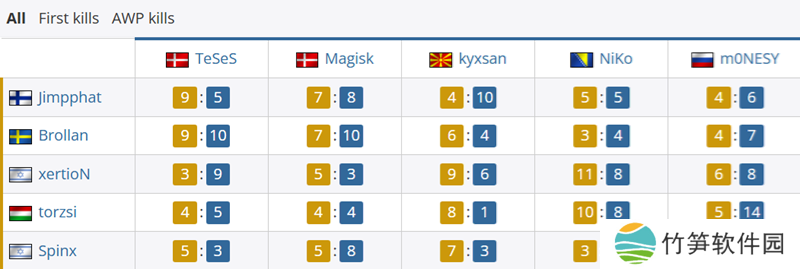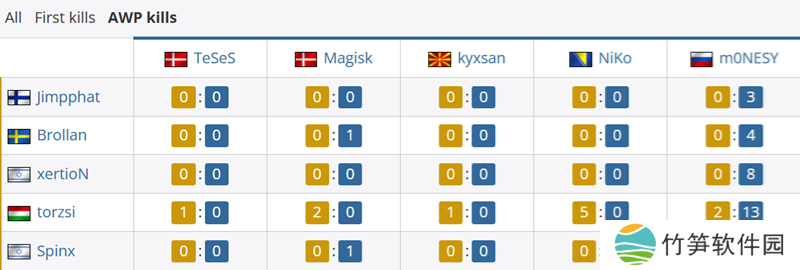全部对位上,虽然NiKo在Nuke上屡遭针对,但他面对Spinx还有着10-3的对位。而m0NESY面对所有MOUZ选手的对位数据都占据优势,面对torzsi和Spinx分别打出14-5和11-5的碾压数据。