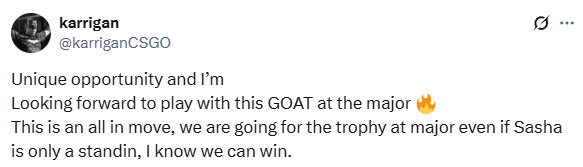 karrigan:千载难逢的机会,我已迫不及待想在Major赛场上与这位历史最佳选手(GOAT)并肩作战