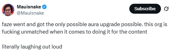 Mauisnake:FaZe这波操作直接拉满战队气场值!在制造话题这方面,这个俱乐部真是天下无敌——我直接笑出声!