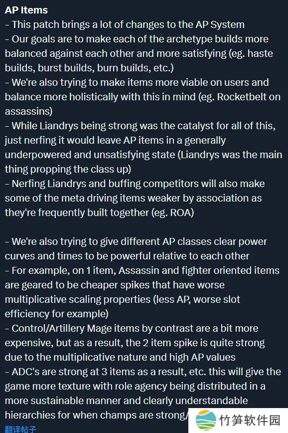 这个版本(25.10)将对大量AP装备作出调整。调整的目的是为了让各个流派(比如技能急速流、爆发流、持续伤害流)的出装强度更加平衡,也更令人满意。