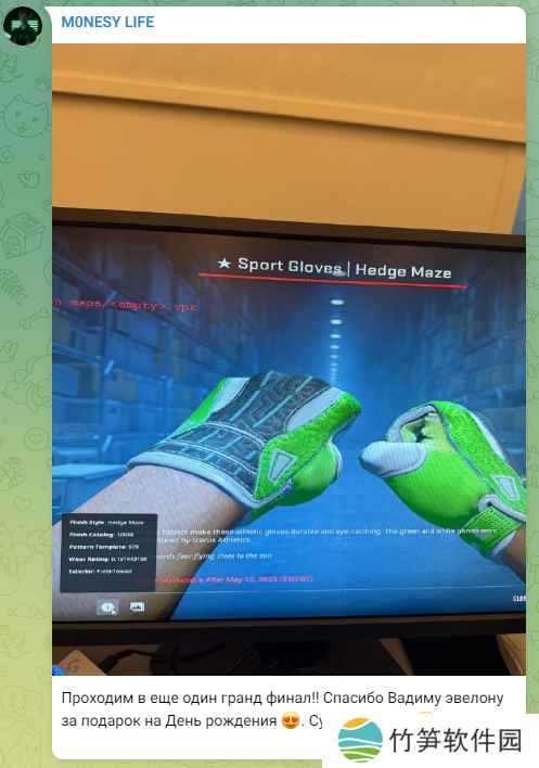Evelone赠送的这款手套为运动手套(★) | 树篱迷宫 (久经沙场),售价区间从1600美元起,根据模板、磨损等不同最高可达11680美元(约95.2万卢布)。