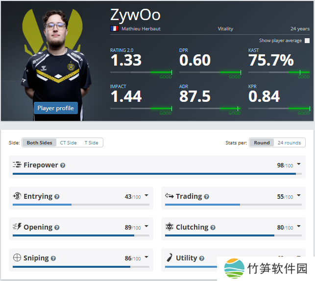 至于成就和赛事成绩,二者之间差距较小,但ZywOo在某些方面略胜一筹: