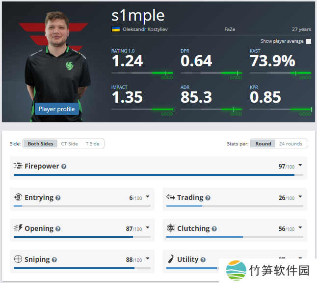 而就在昨晚,告别赛场许久的s1mple宣布重返竞技舞台。于是,社区关于谁才是真正的历史最佳(GOAT)的争论愈演愈烈,对此,巴西媒体Dust2.br统计了两位传奇选手在其职业生涯中的数据和成绩(统计筛选条件为职业生涯所有HLTV记录的比赛)。