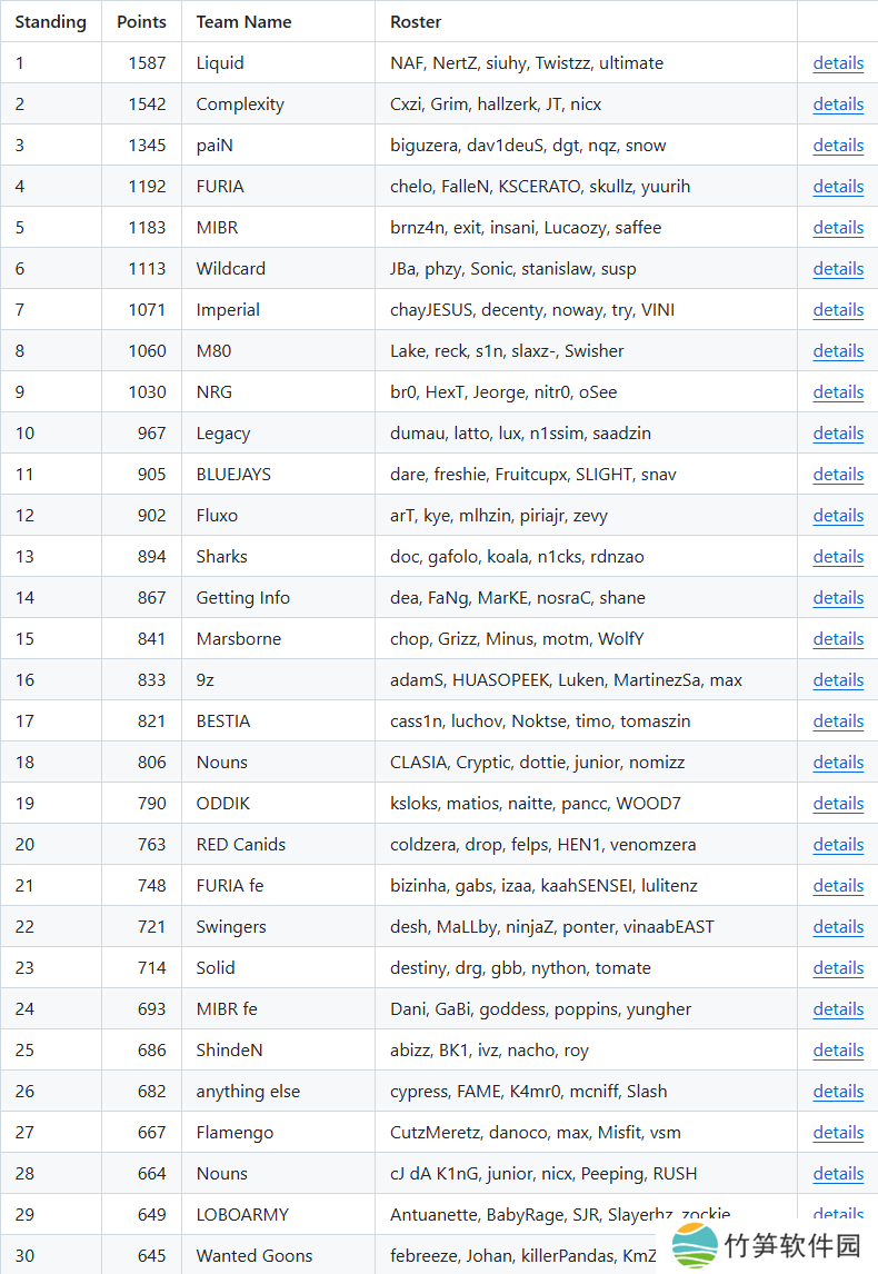 MOUZ 187分,对比上月分差扩大了47分。而第三名Falcons和MOUZ的积分差距仅为3分。