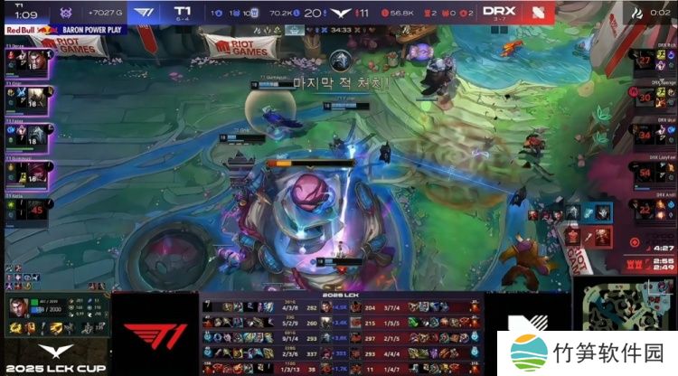 【12:05】T1拿下小龙,DRX想打团结果Faker维克托TP到正面!多个人的T1击杀掉了DRX的上野,随后下野还在河道逮捕了Lazyfeel烬!0换3!