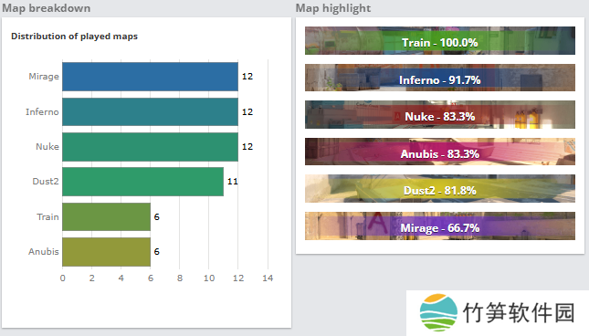 Vitality近三个月展现出的统治力令人叹为观止,他们在“新图”——Train上的胜率高达100%,Inferno也有着91.7%的超高胜率。同时,Vitality在Anubis、Nuke、Duts2上也分别有着83.3%、83.3%、81.8%的不错胜率。哪怕是他们不太擅长的Mirage也有着66.7%的胜率,也比大多数队伍更高(注:Vitality不打Ancient)。
