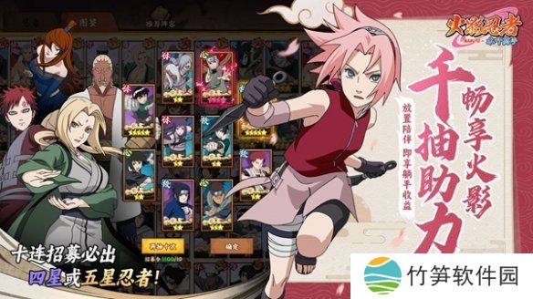 2、超多的火影角色,每一个角色都可以通过抽卡的方式获取,提高了游戏的可玩性。