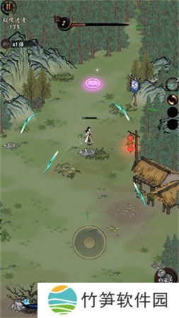 2、进入关卡后,角色会自动攻击出现的敌人,此时,玩家可通过屏幕下方的摇杆来控制角色的移动。