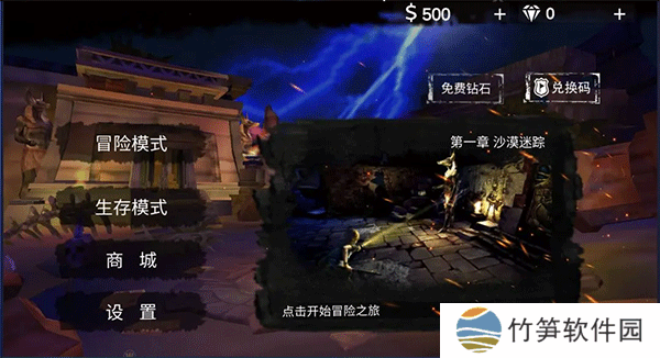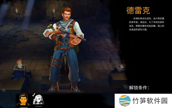 游戏中有两个角色:德雷克(需通过冒险模式第一章节解锁)和艾莎(默认角色)。选择合适的角色进入冒险,灵活应对战斗。