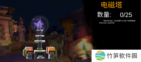 电磁塔:放置后会产生电弧,对敌人造成持续伤害,并能与其他电磁塔产生电磁连接,击中敌人造成巨额伤害。