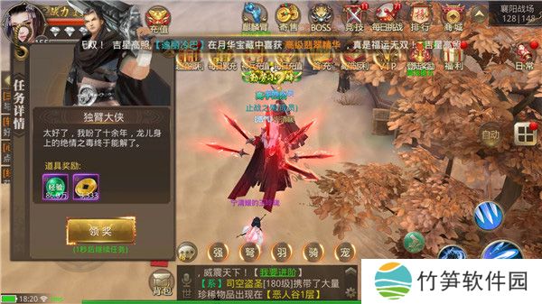 达到一定等级后,玩家可以参与各种PVP战场和活动,如机缘宝矿、瑶池仙泉、心魔幻境、世界boss等。挑战副本、组队副本、离线竞技、武林争霸等战场,丰厚的奖励和经验等你来拿,此外,还能获得英雄令、声望值、荣誉值等奖励,用于兑换技能书和进阶道具。