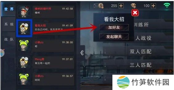 2、返回游戏主界面,点击左下角的聊天框,找到你想要添加的玩家,点击他们的头像,进入个人菜单。