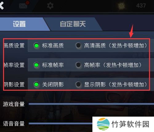 2、在设置面板中选择画质设置,按手机配置调整,电脑则选择最高。