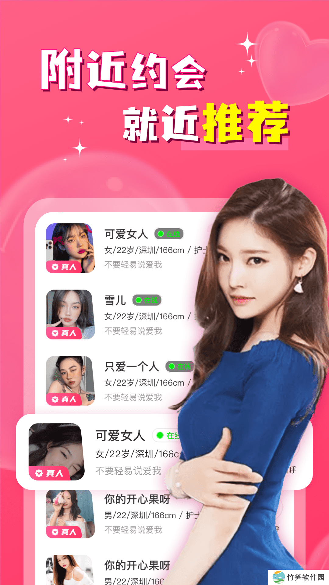 附近探爱陌约是一款超级好用的社交交友类脱单软件,软件中你可以认识超多漂亮的小姐姐和帅气的小哥哥,超级好用的交友玩法和脱单内容等你来解锁,更多好用的同城视频聊天内容等你来体验哦,让你可以轻松找到合适的另一半,有需要脱单的朋友赶快来007游戏网进行下载体验吧!