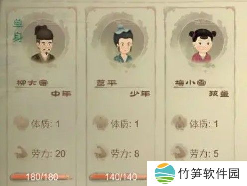 柳大福:中年男人,体力和劳动力都最强,适合执行需要大量体力的任务,如采集和建造。
