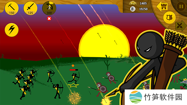 2、游戏中玩家将亲临激烈刺激的战场,指挥你的火柴人勇士进行作战,而且游戏中有着各种火柴人士兵可供训练!游戏中玩家需要一边需要组建自己的火柴人战队。
