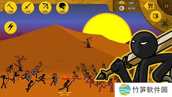 2、游戏中玩家将亲临激烈刺激的战场,指挥你的火柴人勇士进行作战,而且游戏中有着各种火柴人士兵可供训练!游戏中玩家需要一边需要组建自己的火柴人战队。