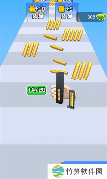 1、核心机制:游戏主打换弹和冲刺为核心,玩家需要在规定时间内快速换弹并冲刺前进,避开障碍物,收集奖励。