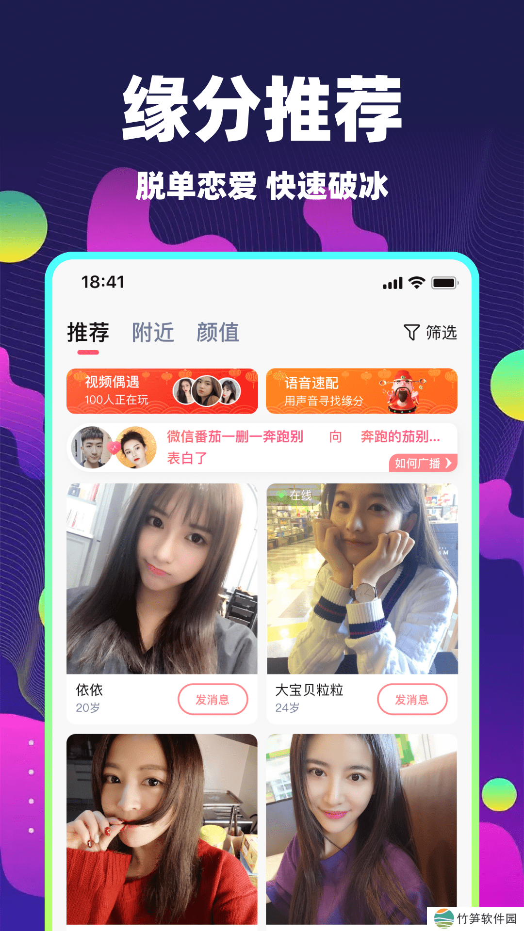 1、智能匹配周边用户,让您可以快速结识同城用户;