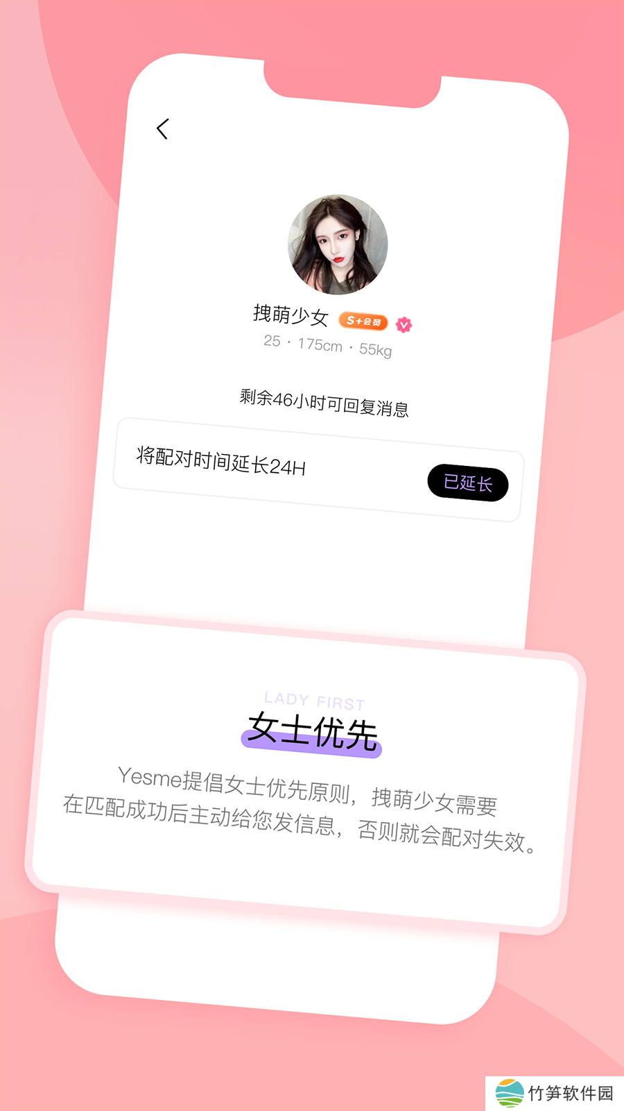 1、YesmeAPP是一款倡导女性至上的陌生人社交应用;