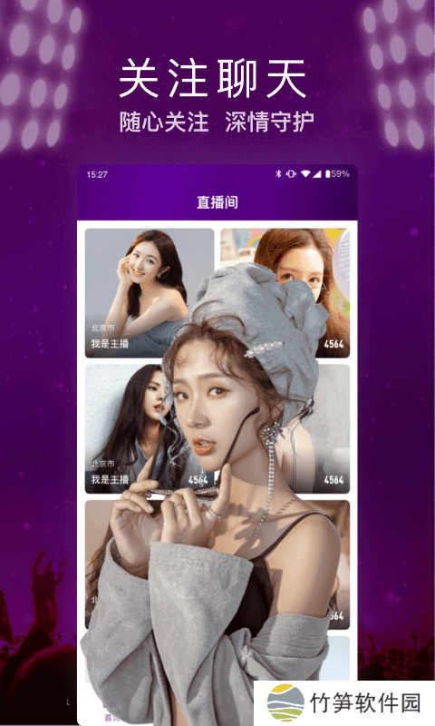 1关注聊天,软件中可以与自己喜欢的主播一对一的进行聊天,拉近你们距离;