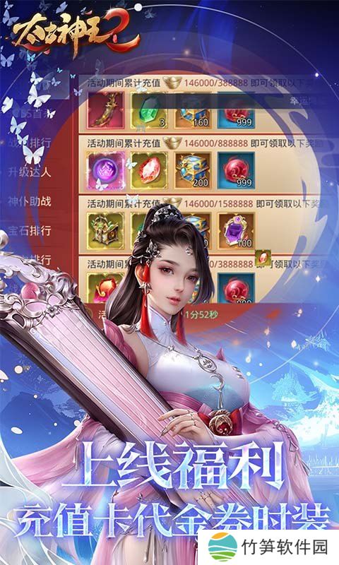 4、创建角色即解锁海量专属福利,打金效率提升至100%,更有太古炫酷时装包、万元真充卡礼盒、500元真充卡、500元钱包余额以及1亿金币等豪华大礼,即刻拥有,畅享游戏乐趣!