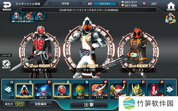 2、庞大的角色阵容:从昭和时代的经典骑士到平成、令和系列的新生代英雄,玩家可以体验到跨时代的骑士合集,感受每一代角色的独特魅力。
